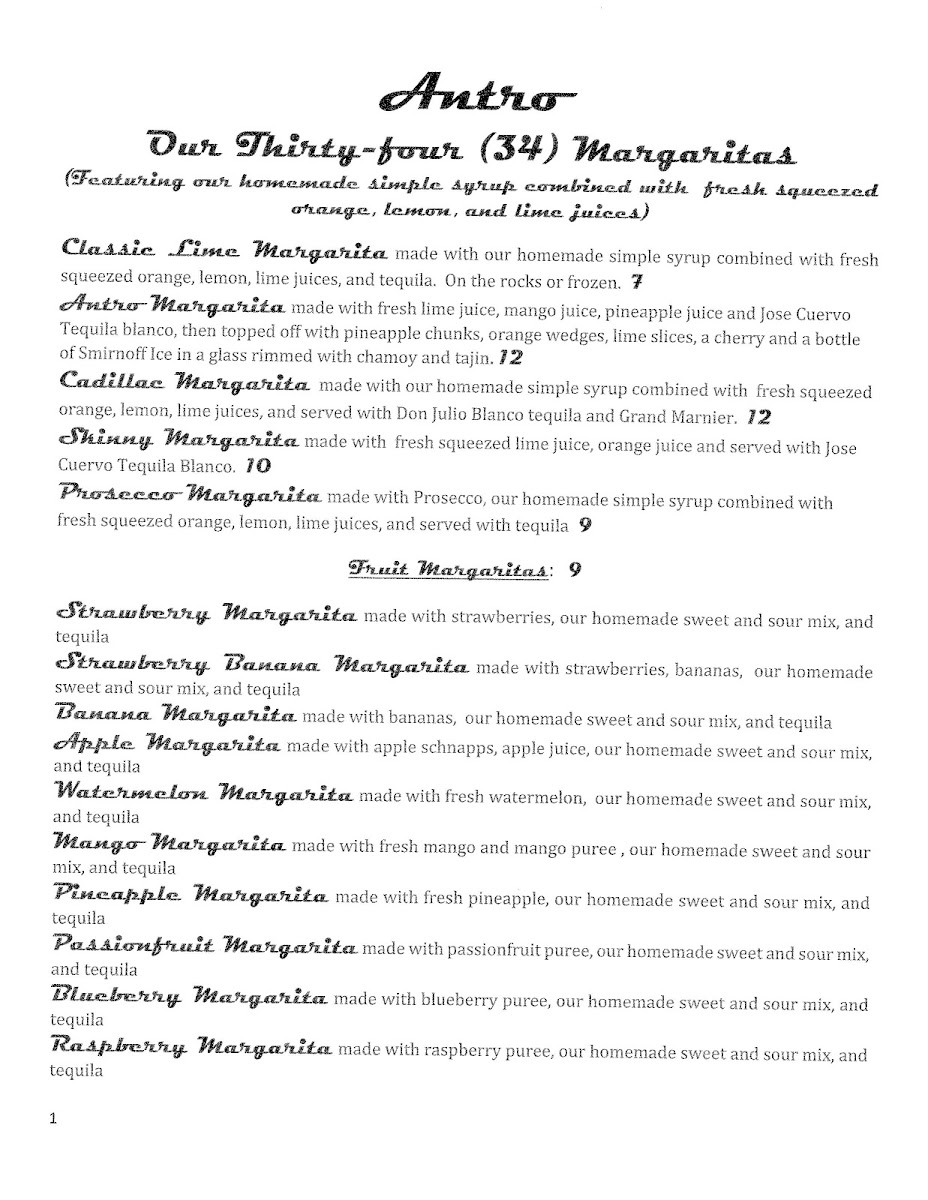 For margarita enthusiasts, Antro offers an incredible array of thirty-four options. From the classic lime to inventive twists like the Hibiscus and JalapenoCilantro margaritas, there's a perfect cocktail for every palate. The spicy margaritas add a delightful kick, making each sip a thrilling journey through flavor.